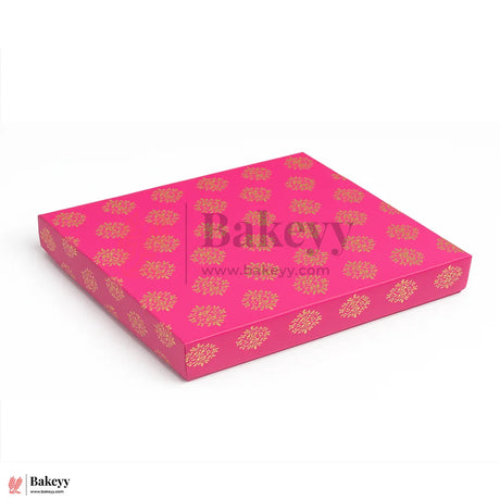 Rs. 850.00Rs. 950.00Unit price /UnavailableIn stock (11 units)8x8x1.5 inch | Elegant Floral Squire 16 Cavity Gift Sweet Box| Pink & Gold Accents 1 Piece
