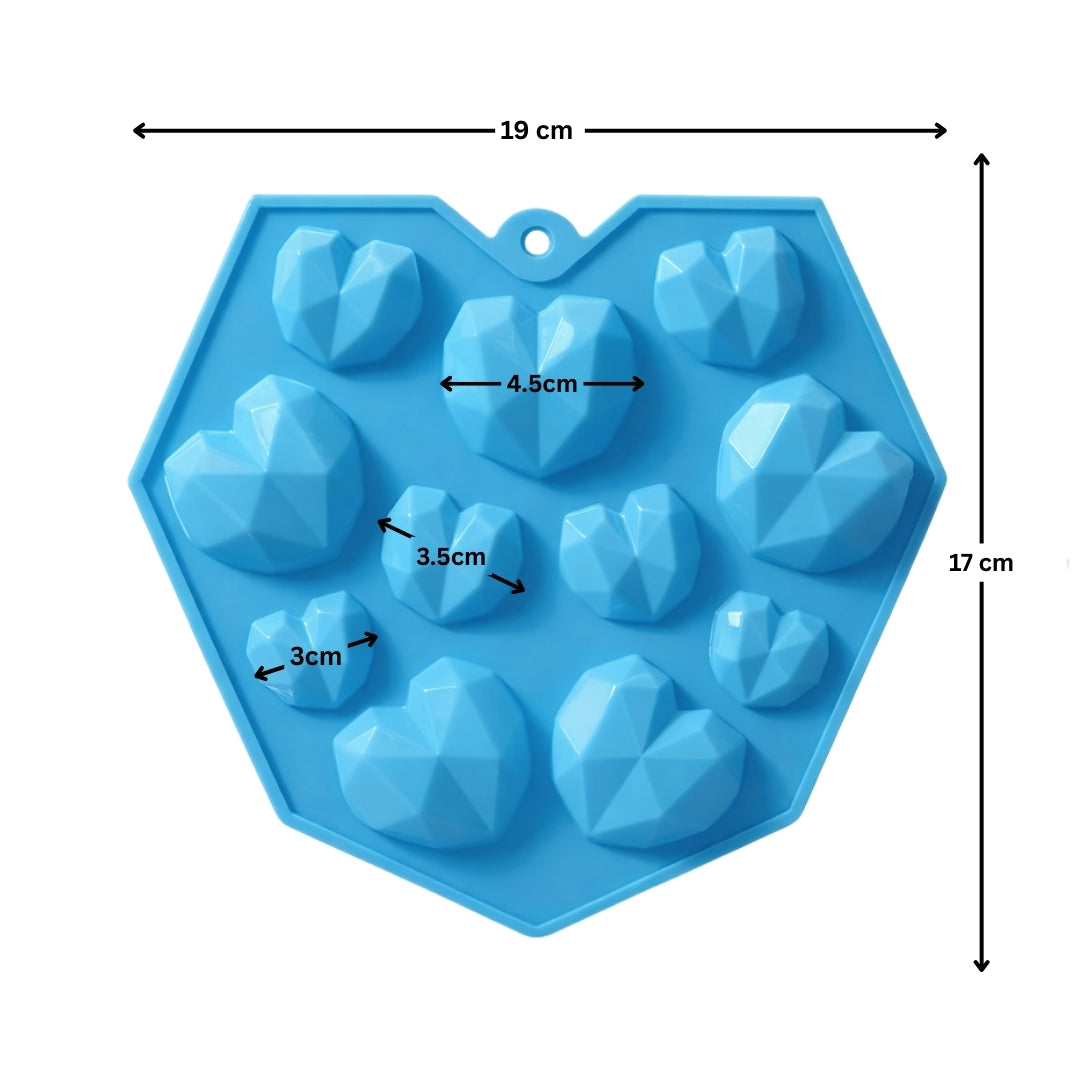 10 Cavity Geometric Heart Silicone Chocolate Mould | Mini Dessert & Chocolate Mold | Pack of 1