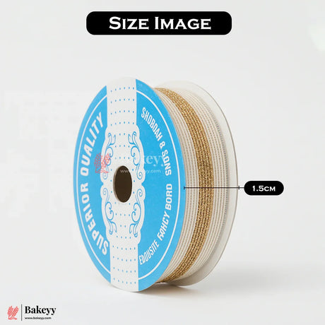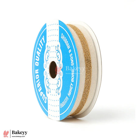 Rs. 170.00Rs. 210.00Unit price /UnavailableLow stock (10 units)343 | Elastic Royal Blue Ribbon with Gold Borders – 3cm Width | 18 Meters Roll