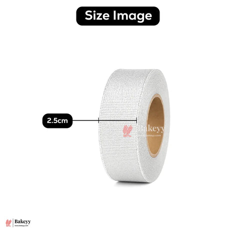 25mtr Premium 2.5cm Metallic Silver Ribbon Roll – Elegant Shiny Finish| 1 Roll