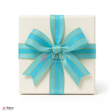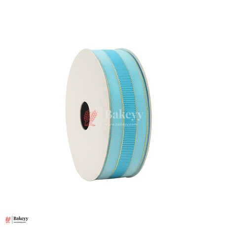 Rs. 126.00Rs. 150.00Unit price /UnavailableVery low stock (2 units)18mtr Premium Light Blue Grosgrain Ribbon with Golden Stitch – 1 Inch | Ideal for Gifting & Crafting