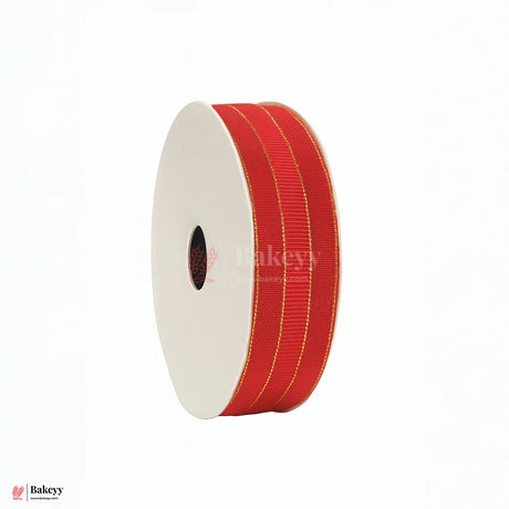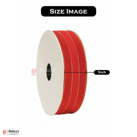 18mtr Premium Red Grosgrain Ribbon with Golden Stitch – 1 Inch | Ideal for Gifting & Crafting