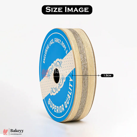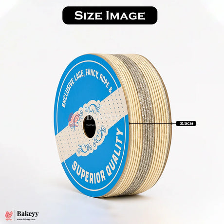 Rs. 170.00Rs. 210.00Unit price /UnavailableLow stock (9 units)343 | Elastic Grey Ribbon with Gold Borders – 3cm | 18 Meter Roll