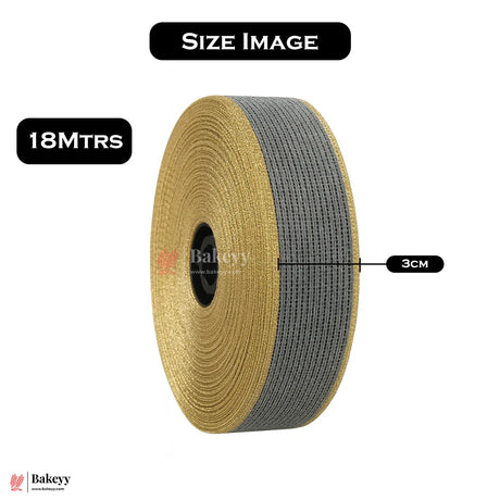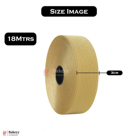 343 | Elastic Gold Ribbon with Gold Borders – 3cm Width | 18 Meters Roll