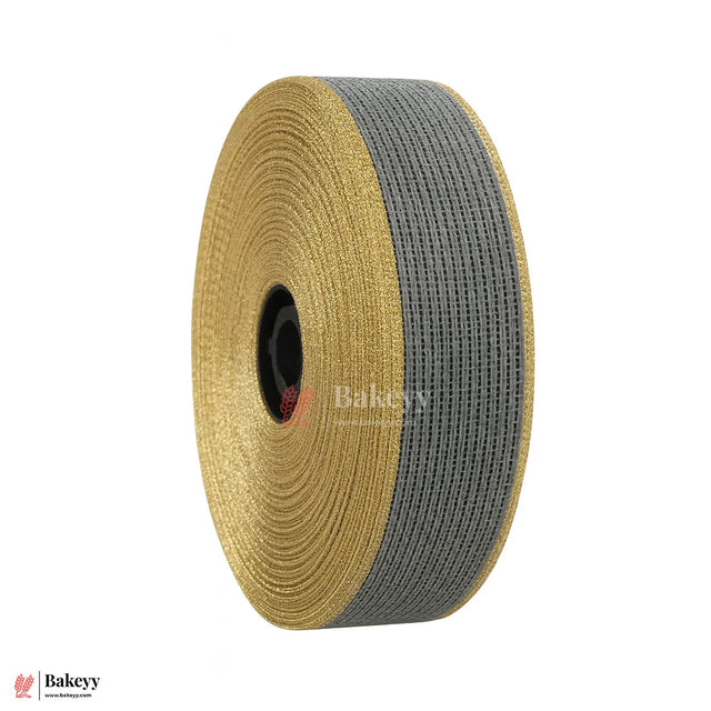 The central grey portion is made of premium elastic fabric, allowing it to stretch and mold around objects with ease — ideal for creating snug ties, neat bows, and stylish trims. Framed by shimmering gold edges, the ribbon brings a luxurious touch that stands out without being overpowering.