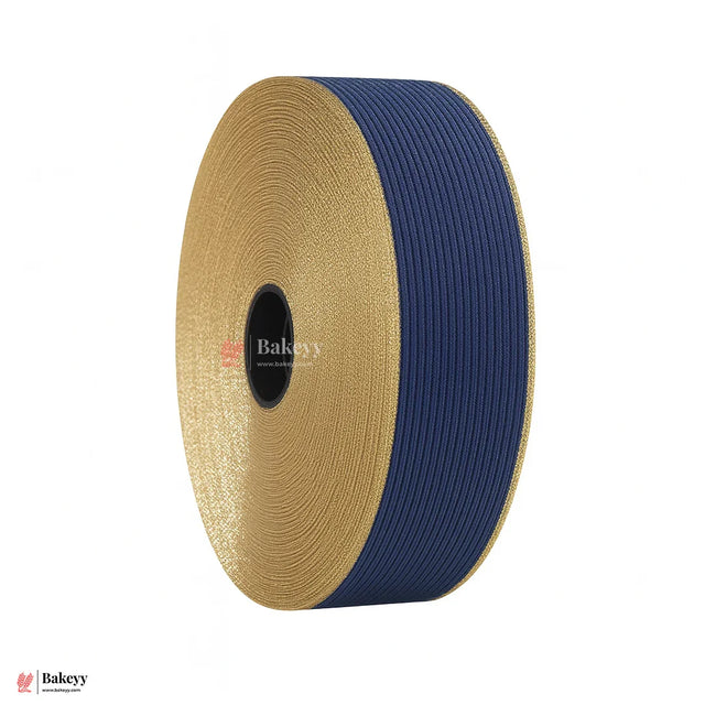 Add a touch of luxury and sophistication to your gift wrapping and craft projects with this beautifully designed Golden & Royal Blue Elastic Ribbon. This ribbon roll features a dual-tone design with a dazzling golden shimmer border and a royal blue elastic center adorned with fine vertical line detailing, giving it a premium, modern aesthetic.