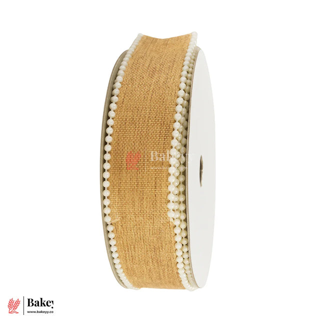 9mtr Jute Ribbon Roll with Pearl Edge | Sand Brown Color