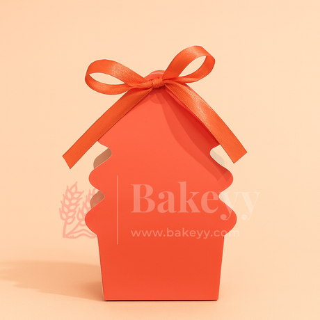 Christmas Tree Shaped Goodie Box with Satin Ribbon | Christmas Goodie Box | Pack of 10