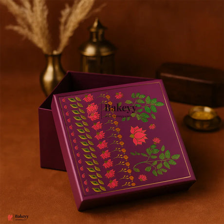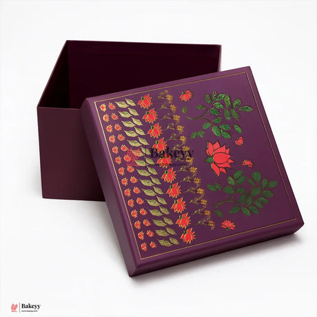 Rs. 150.00Rs. 190.00Unit price /Unavailable Floral Printed Premium Square Gift Box – Purple | Reusable Rigid Hamper Packaging | Pack Of 1