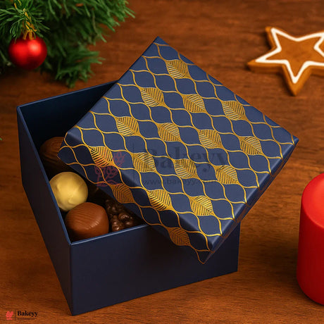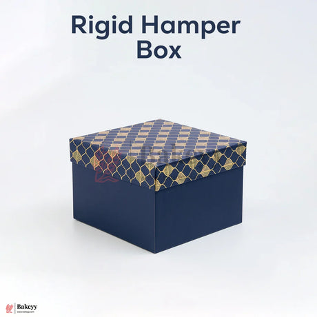 Premium Rigid Hamper Box | Blue with Golden Leaf Print | Pack of 1