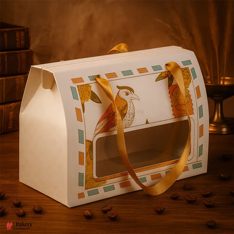 Rs. 269.00Rs. 350.00Unit price /UnavailableVery low stock (2 units)7x5.25x3.75 Inch | Premium Designer Window Box with Bird Print Golden Ribbon Handle | Pack of 10