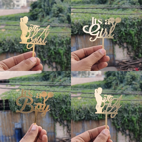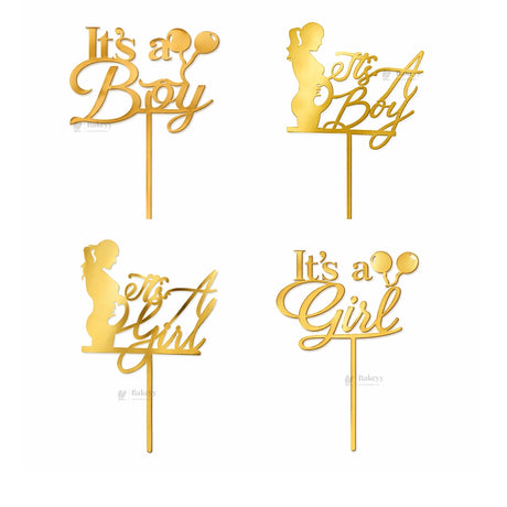 4 Inch Gold Acrylic Baby Shower Cake Topper | Oh Baby, Mom To Be & Baby Shower Designs | Pack of 5