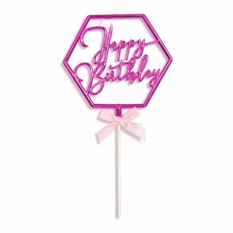 8.5 Inch | Metallic Pink Happy Birthday Cake Topper with Ribbon | Metallic Pink | 1 Piece