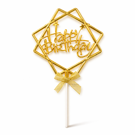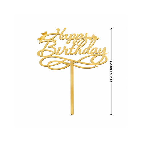 8.5 Inch | Metallic Gold Happy Birthday Cake Topper with Ribbon | Metallic Gold | 1 Piece