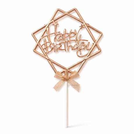 8.5 Inch | Metallic Rose Gold Happy Birthday Cake Topper with Ribbon | Metallic Rose Gold | 1 Piece