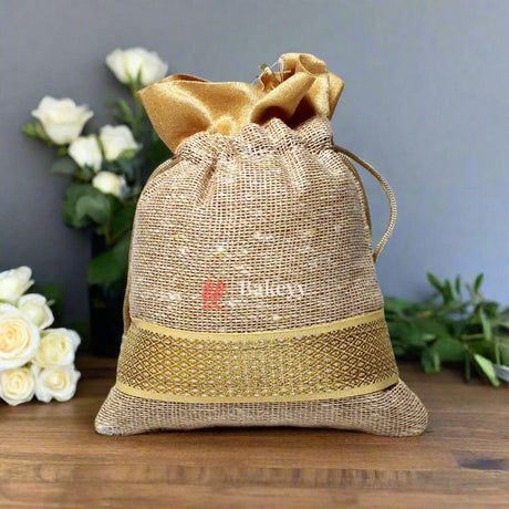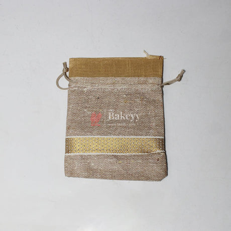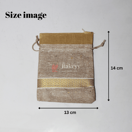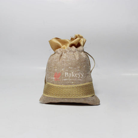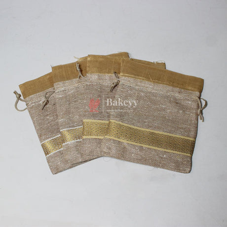 13x14 CM \ 5x6 inch| Elegant Jute Cream Drawstring Gift Bag | Drawstring Bags | Pack of 10