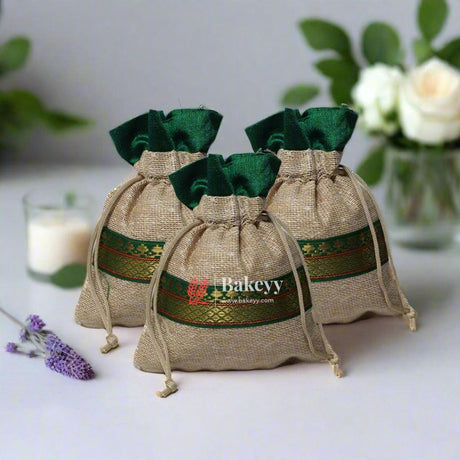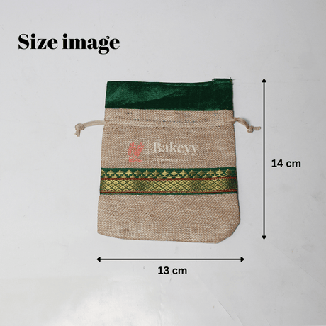 13x14 CM \ 5x6 inch| Elegant Jute Green Drawstring Gift Bag | Drawstring Bags | Pack of 10