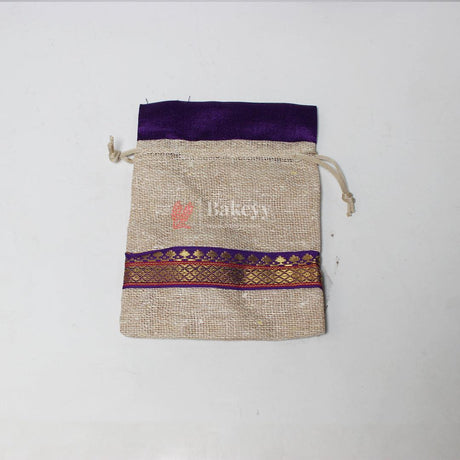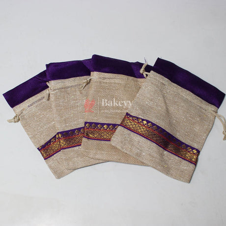 13x14 CM \ 5x6 inch| Elegant Jute Purple Drawstring Gift Bag | Drawstring Bags | Pack of 10