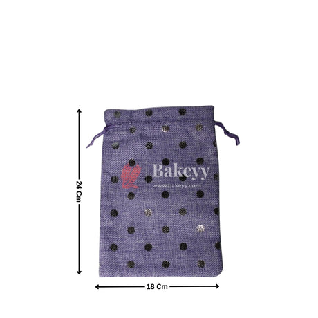 Purple With Silver Dots Premium Colour Jute Potli Bags | Pack Of 10