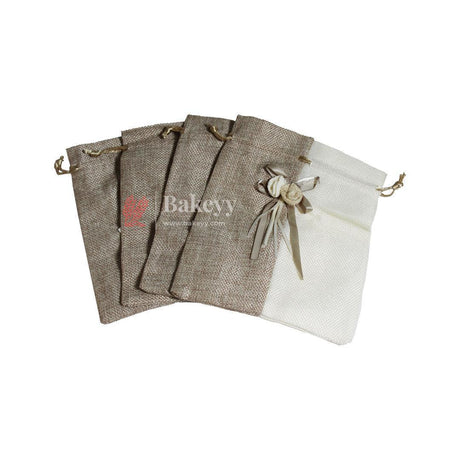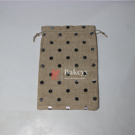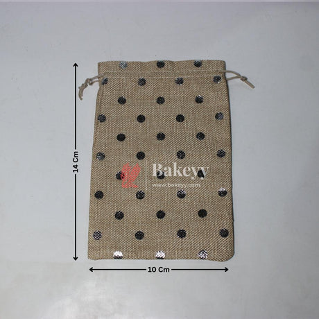 Natural Jute With Silver Dots Premium Colour Jute Potli Bags | Pack Of 10