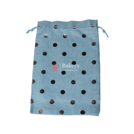 Sky Blue With Silver Dots Premium Colour Jute Potli Bags | Pack Of 10