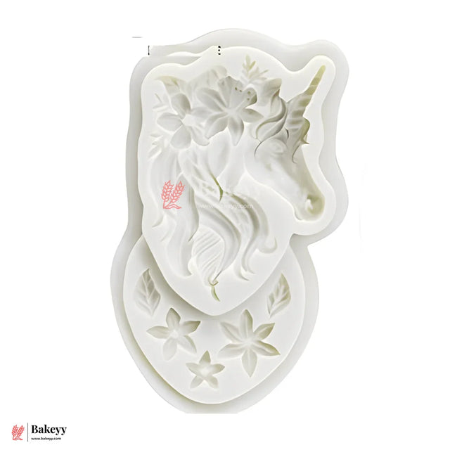 12 | Unicorn with Floral Mane Design Silicone Mould - 1 Piece