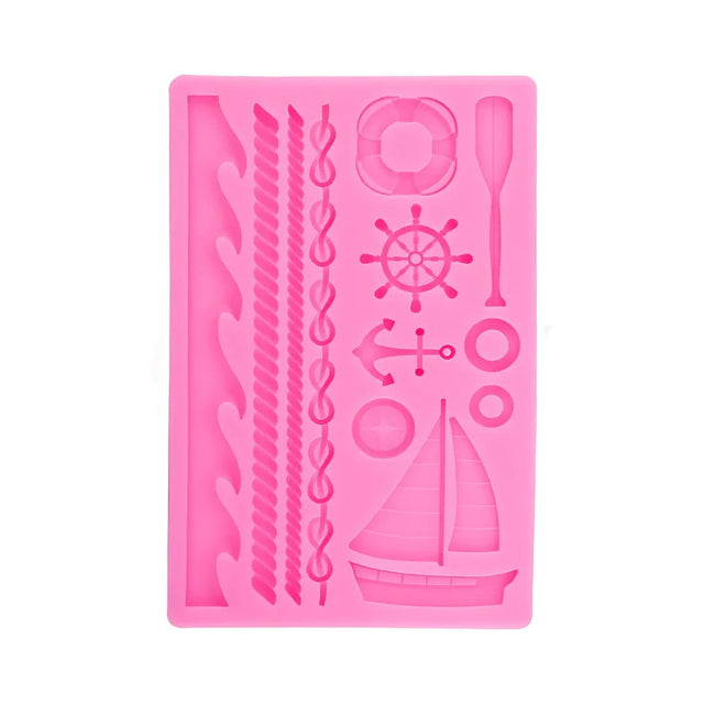 Marine-Themed Silicone Fondant Mould – 1 Piece | Boat, Anchor, Life Buoy & Ocean Cake Decor Mould
