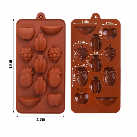 11-Cavity | Fruits Shape Silicone Chocolate Mold | Non-Stick Baking & Candy Making Tray | 1 Piece