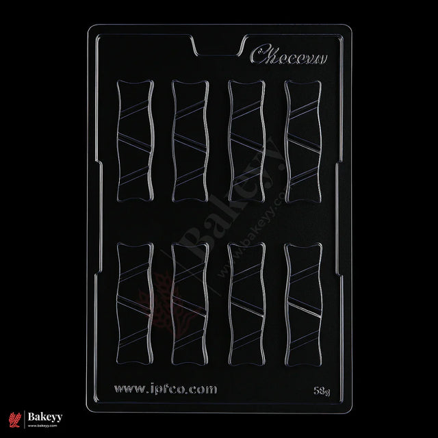 Craft sleek, professional chocolate bars with the Cacao Mould No. 661. Featuring an elegant twist design, this premium polycarbonate mould produces 10 uniform bars measuring 8 cm in length and 2.5 cm in width. Built from high-quality, food-grade polycarbonate, it delivers easy demoulding, a glossy finish, and durability for repeated use. Perfect for plain, filled, or flavored chocolate creations for gifting, selling, or enjoying at home.