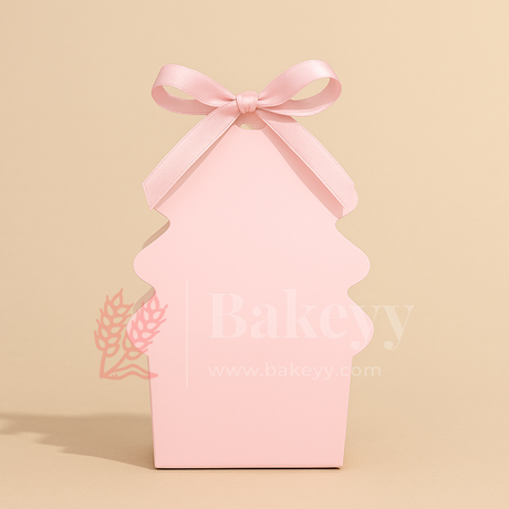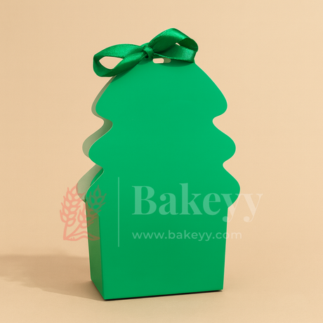 Christmas Tree Shaped Goodie Box with Satin Ribbon | Christmas Goodie Box | Pack of 10