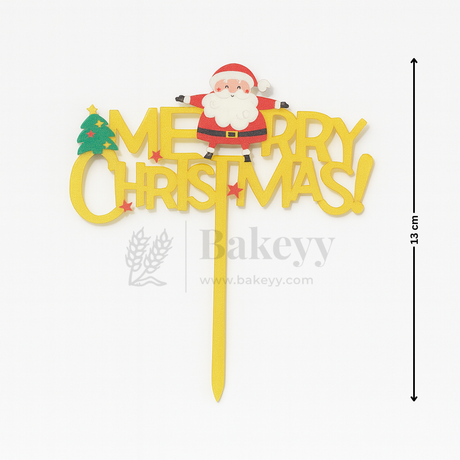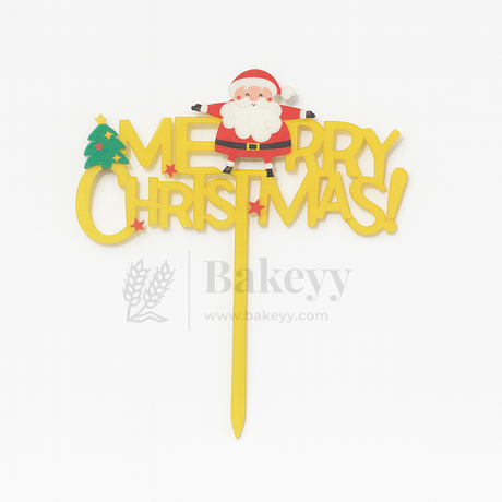 Merry Christmas with Santa and Tree Cake Topper | Golden Color | Christmas Decor | Pack of 5