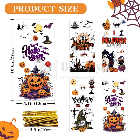 Halloween Cellophane Treat Bags With 50 Pieces Twists | Pack of 50