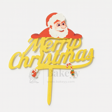 Merry Christmas with Santa Cake Topper | Golden Color | Christmas Decor | Pack of 5