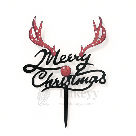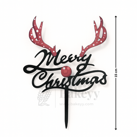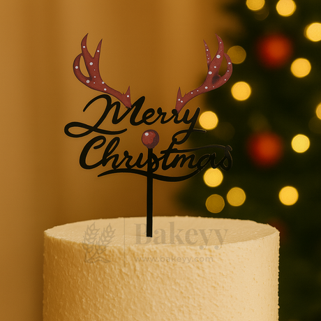 Merry Christmas with Reindeer Antler Design Cake Topper | Black Color | Christmas Decor | Pack of 5