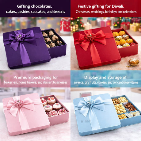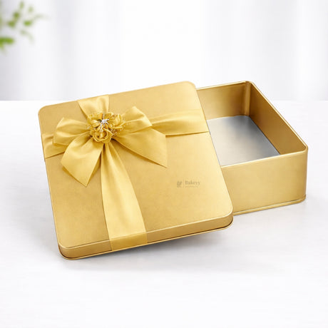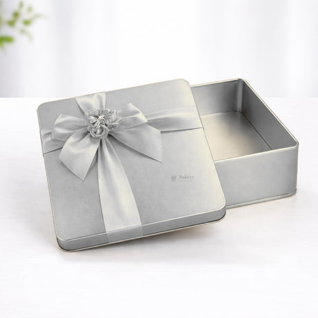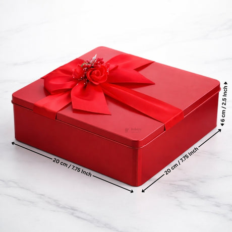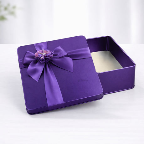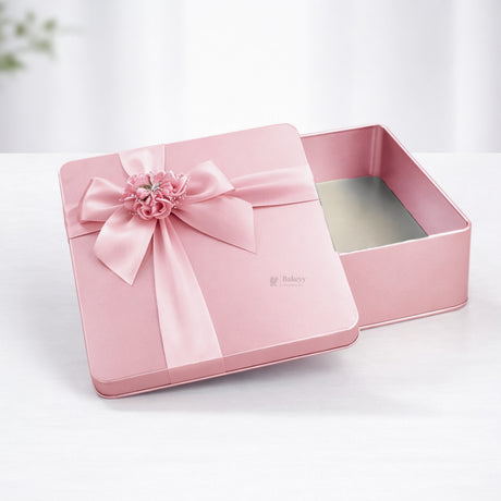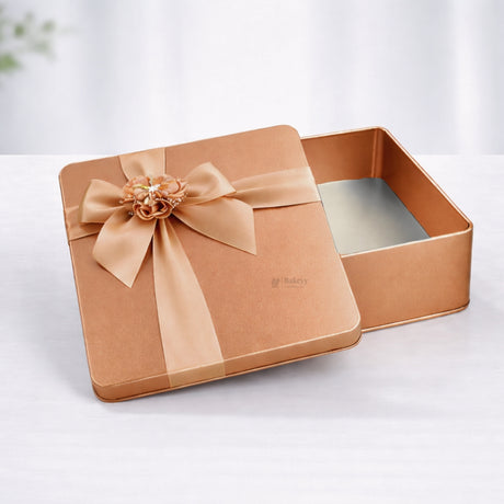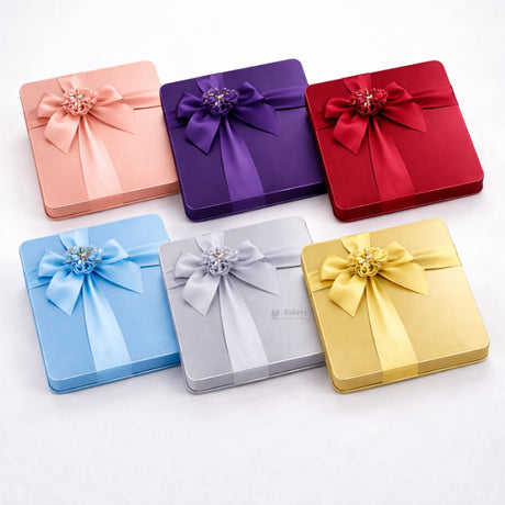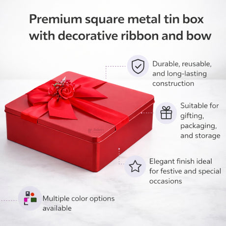 Square Decorative Tin Box with Ribbon | Premium Gift Packaging | Multiple Color Options | Pack of 1