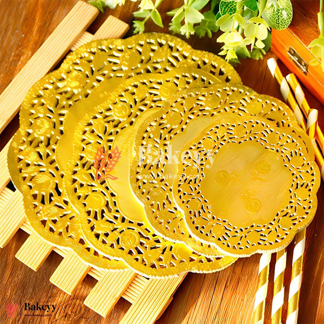 Crafted from high-quality paper with a durable metallic finish, these doilies are versatile enough to be used under cakes, cupcakes, pastries, or even as a decorative layer beneath trays, jars, or candle holders. Their lightweight structure and elegant design make them a popular choice for weddings, festive hampers, high-tea events, and home décor styling.