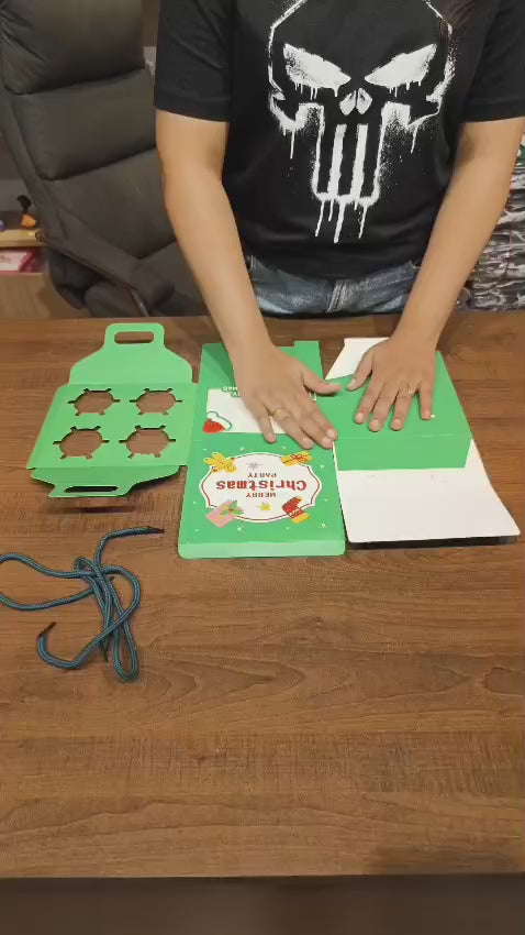 Add festive charm to your holiday treats with this Christmas-Themed 4 Cupcake Box, beautifully designed to make your desserts stand out. Each box comes in bright, cheerful Christmas prints featuring Santa Claus and a snowman, perfect for gifting or festive displays.