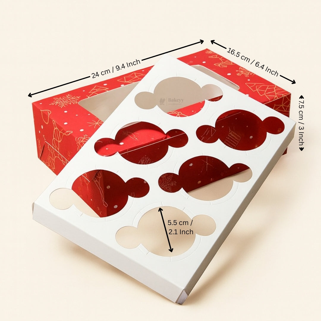 Christmas Cupcake Box with Window | Red Festive Design | Festive Cupcake Box | Pack of 10