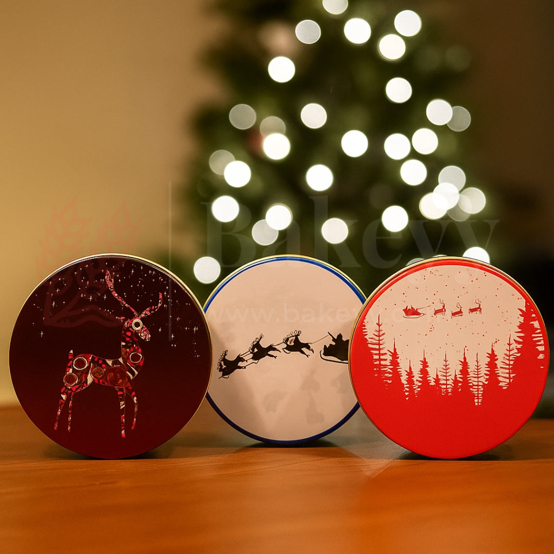 Available in two size variants — 500 g and 1 kg, these tins feature charming assorted Christmas-themed prints, perfect for spreading holiday cheer.