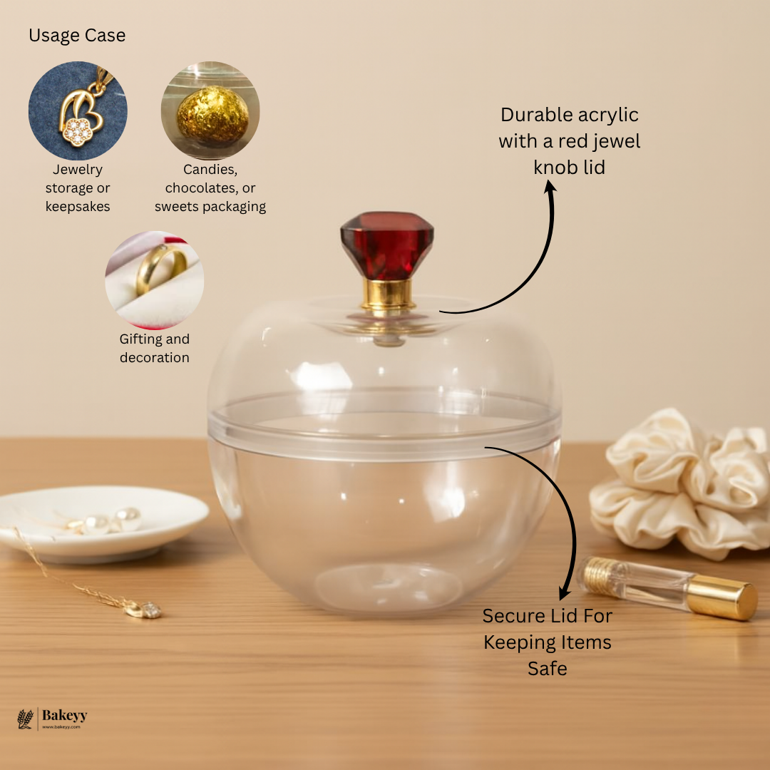Clear Round Plastic Box with Crystal Top Knob | Clear Display Container | Transparent Apple Shape Box Container | Pack of 12