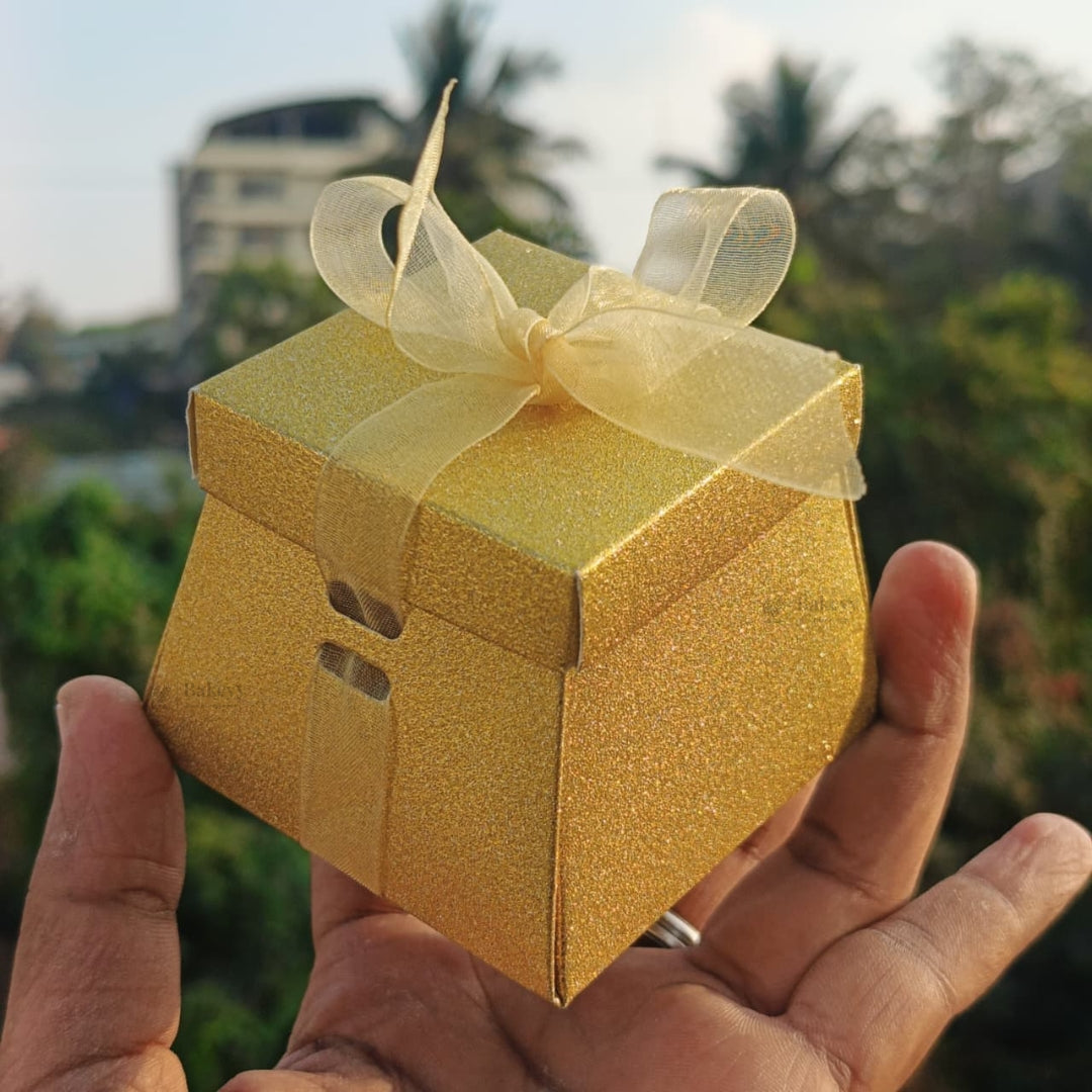 Glitter Gold Gift Box with Ribbon | Elegant Paper Favor Box for Chocolates & Goodies | Pack of 10
