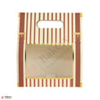 - Elegant Design: Striped pattern with golden detailing and belt-style print.
