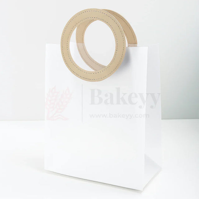 Transparent Bags With Leather Style Beige Colour Handles | Pack of 12