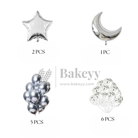Rs. 60.00Rs. 75.00Unit price /UnavailableLow stock (10 units)Silver Moon & Star Balloon Set | Party Decoration Combo | 14 pc Set | 1 Piece