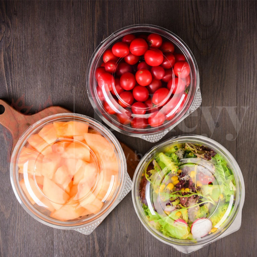 Keep your food fresh, presentable, and easy to carry with these high-quality round disposable plastic containers. Made from durable, food-grade PET material, these containers come with a clear dome lid that provides extra space and ensures your food stays secure while maintaining visibility for an appealing presentation.