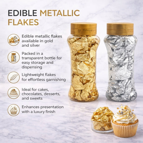 Edible Metallic Leaf Flakes | Gold & Silver Finish | Cake Decoration & Dessert Garnish | Pack of 1
