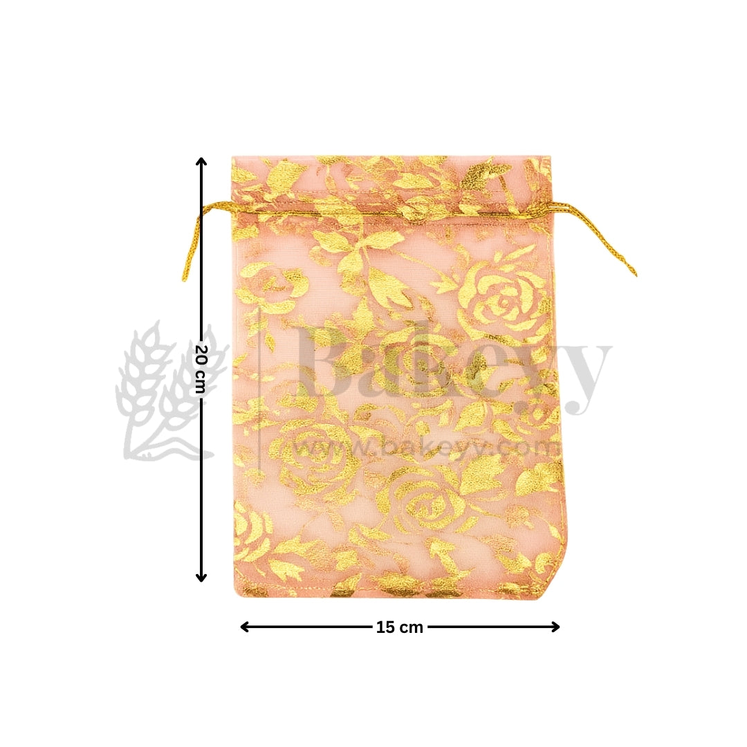 These drawstring organza gift pouches feature a delicate floral print that adds an elegant touch to any gifting or packaging need. Made from lightweight organza fabric, they allow the contents inside to be partially visible, creating a refined and decorative presentation. The smooth drawstring closure makes it easy to open and secure the pouch, making them ideal for gifting sweets, return gifts, jewellery items, festive favours, wedding giveaways, and party hampers.