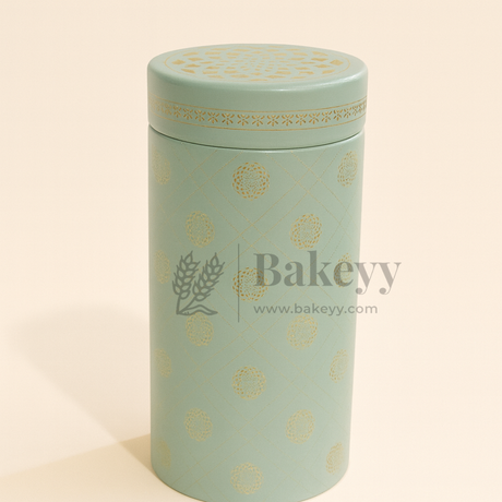 7x15 cm | Elegant Light Blue Floral Storage Tin Jar with Golden Arch Motif | Pack of 1