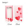 Each box features a tall rectangular structure with a transparent window on the front and a fully printed back design. Multiple Valentine-themed prints are available, including hearts, florals, illustrations, and elegant typography, making them suitable for a wide range of gifting styles.