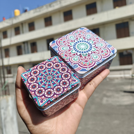 Rs. 240.00Rs. 600.00Unit priceRs. 40.00 / itemUnavailableIn stock (307 units)Square Mandala Print Tin Box | Mandala Print | Tin Box